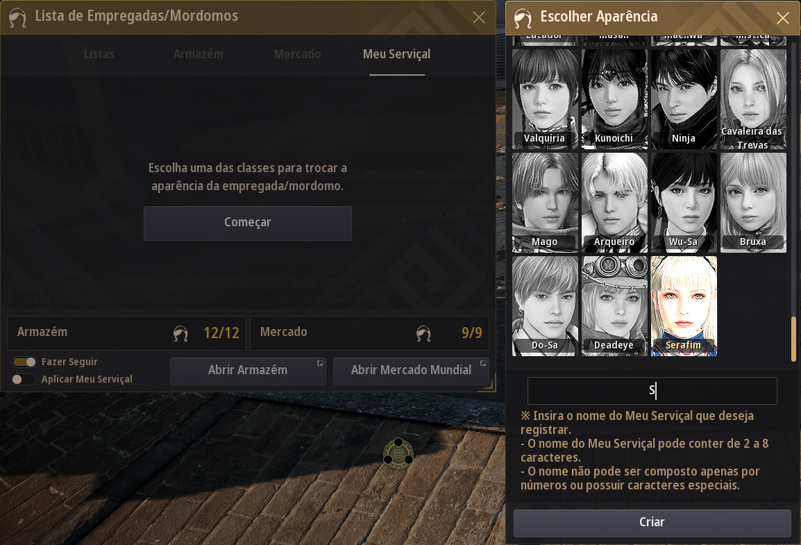 - Adição de opção para criar Meu Serviçal com a aparência da Classe Serafim.