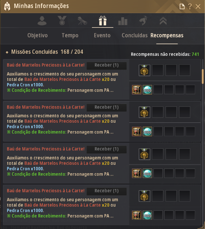 Adicionamos um novo Desafio para aventureiros que alcançaram PA 340 ou mais: agora, a cada aumento específico de PA, vocês poderão obter um Baú de Martelos Preciosos à La Carte.Assim como no passado, quando era possível receber recompensas ao atingir certos valores de PA e PD por meio das Missões do Espírito Negro, preparamos essa novidade para valorizar ainda mais o ""sentimento de conquista"".