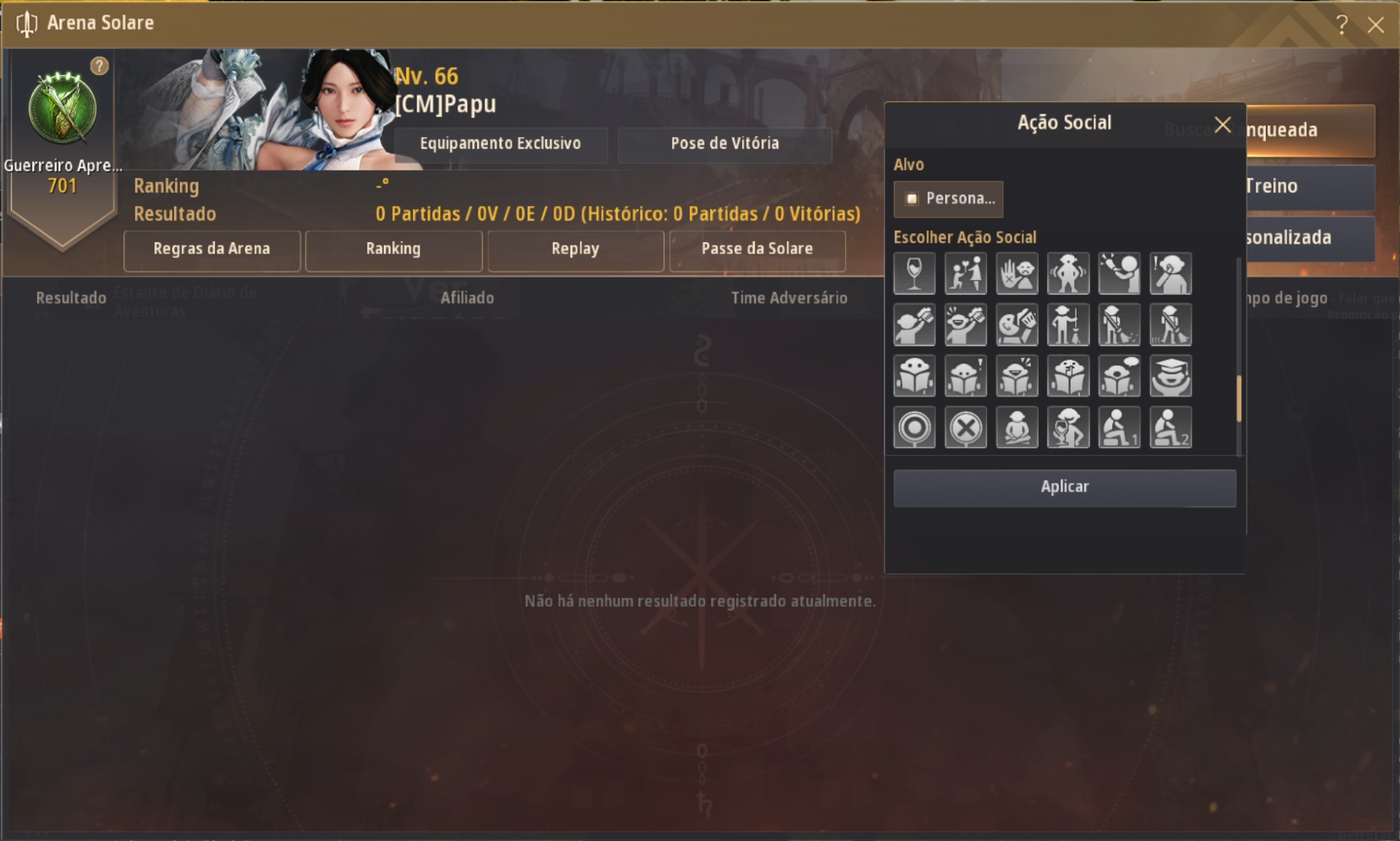 Caso não haja registro de partidas | Guerreiro Aprendiz IV (701) |