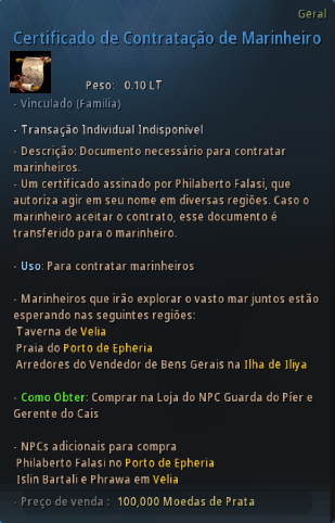 Você poderá encontrar os seguintes marinheiros no Porto de Epheria.