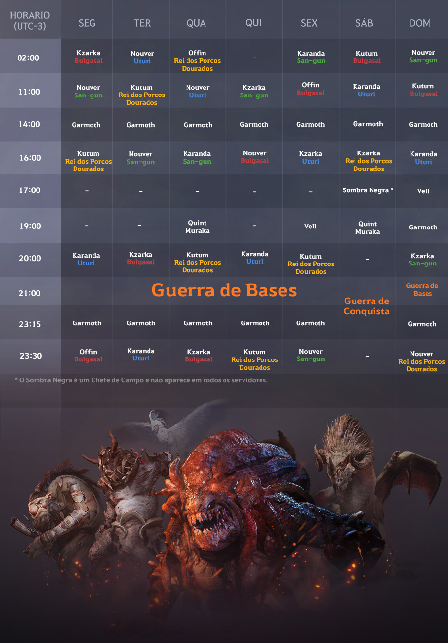 Horário de Aparição dos Chefes Mundiais (No Mundo de Black Desert)