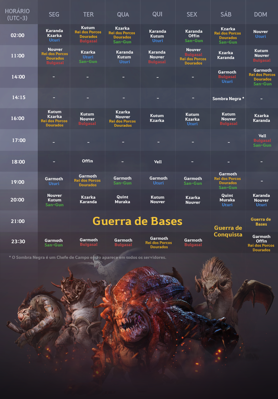 Horário de Aparição dos Chefes Mundiais (No Mundo de Black Desert)