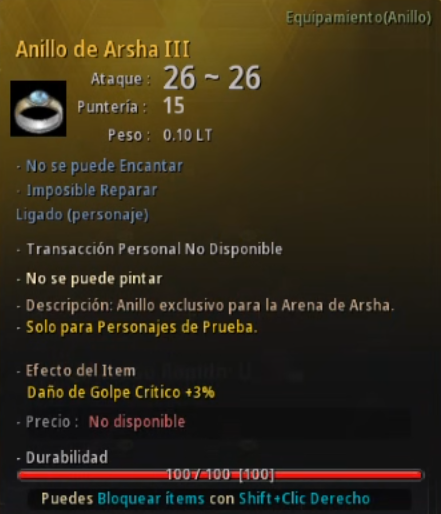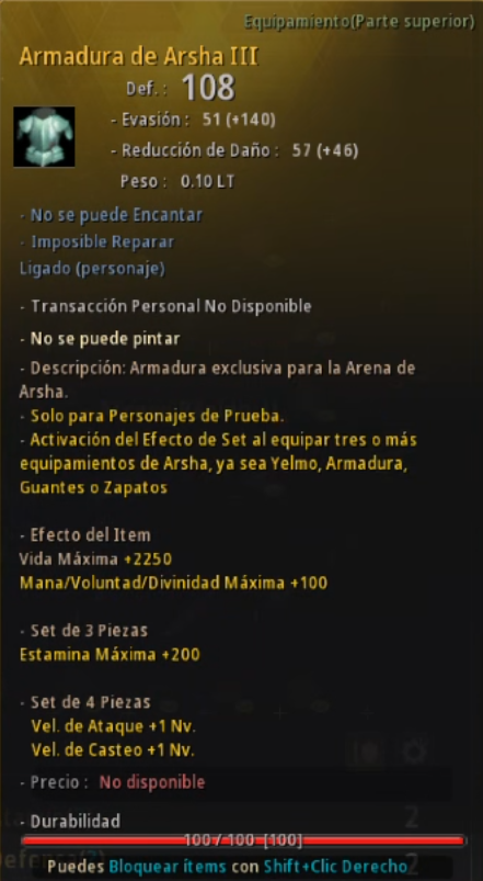 - Ya está disponible el Equipamiento de Arsha III, que puedes obtener con un Personaje de Prueba.