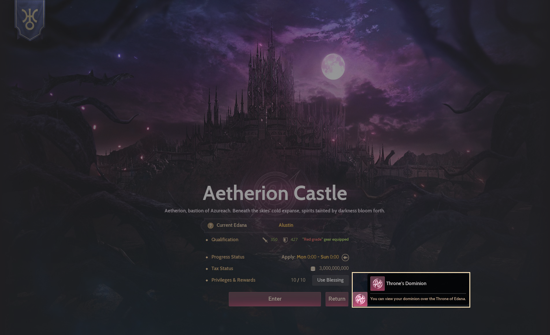 - Se ha agregado la función “Área de Trono”, que permite al aventurero que ha ocupado el Trono de Edana ver su territorio a través de la interfaz exclusiva de Edana.