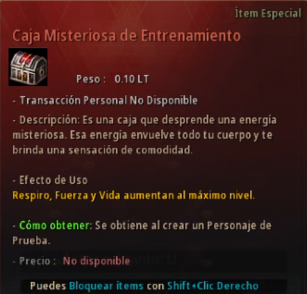 - Al crear un Personaje de Prueba, se ha agregado un ítem que aumenta las estadísticas de entrenamiento al máximo.