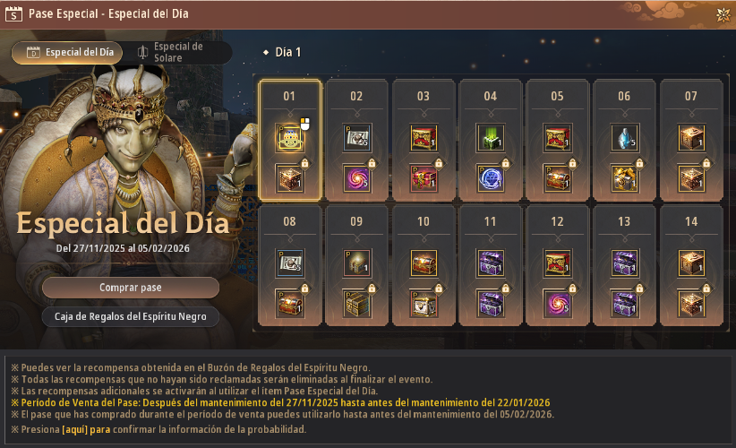 - El Pase Especial del Día no utilizado se eliminará al final del período de recompensas del Especial del Día.