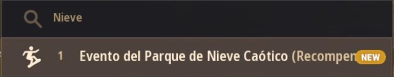 Busca Menú (ESC) → Evento Parque de Nieve.