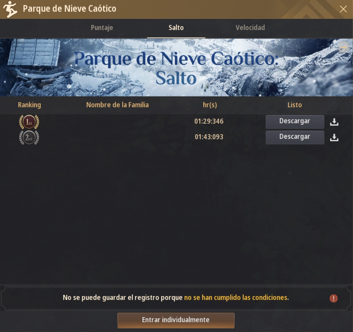 * Estas misiones están disponibles una vez por Familia., [Evento] Introducción al Parque de Nieve: Velocidad y Saltos se desbloquean tras completar