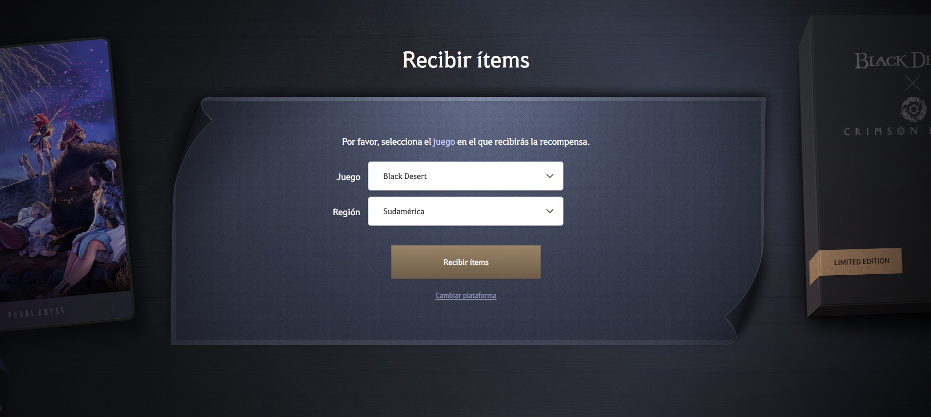 Selecciona el juego y la región en la que deseas recibir tu recompensa.