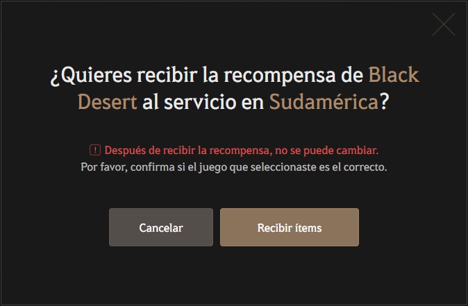 Después de verificar que el juego y la región seleccionados coinciden con la información de la cuenta que recibirá la recompensa, haz clic en [Reclamar].