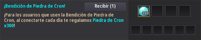 - Mientras la Bendición de Piedra de Cron esté activa (7 días), inicia sesión diariamente para reclamar Piedra Cron x300 mediante Desafío (Y).