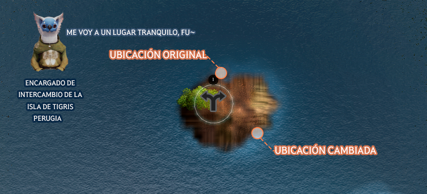 - Alteração na qual o gerente de permuta da Ilha de Tigris, Perugia, mudou-se para um local mais tranquilo da ilha devido ao aumento de pessoas pescando recentemente na Ilha de Tigris.