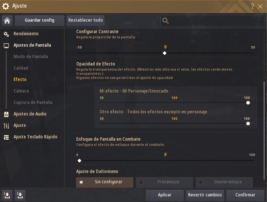 • En Menú(ESC) - Ajustes del Juego - Ajustes de Pantalla - Efecto, la opción "Opacidad de Efecto" se ha mejorado para que puedas configurarla de manera más detallada, separando los efectos de tu personaje y los demás efectos en dos categorías diferentes.