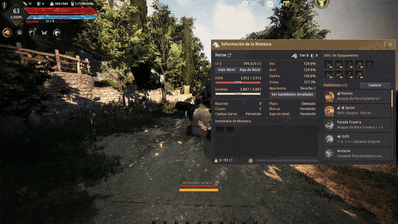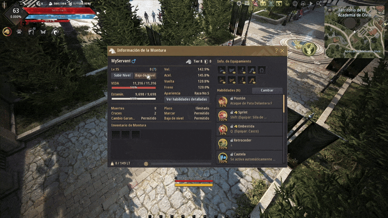 • El crecimiento de la Montura puede realizarse en el Establo o en la Ventana de Información de la Montura.