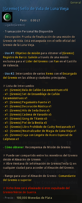 Intercambio con [Gremio] Sello de Combate/Vida de Luna Vieja