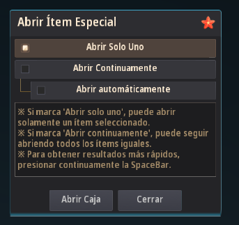 • Ahora, al hacer clic en el botón de 'Abrir automáticamente' en la UI de abrir ítem especial, también se habilita el botón de 'Abrir Continuamente'.