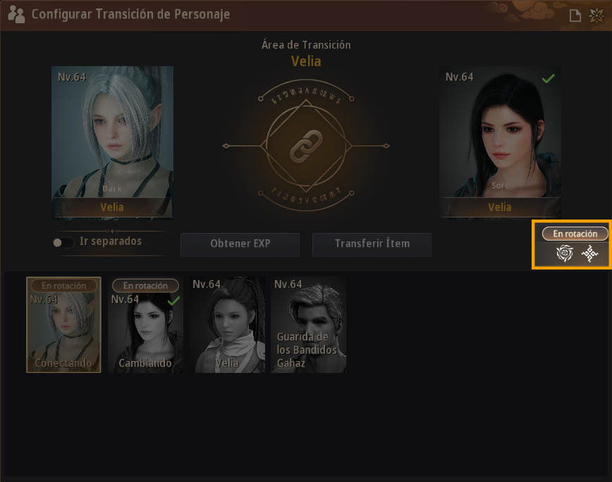 Además, ahora el personaje actualmente conectado aparecerá en primer lugar en la lista, y se añadió un borde al retrato para que sea más fácil identificar qué personaje tienes seleccionado.