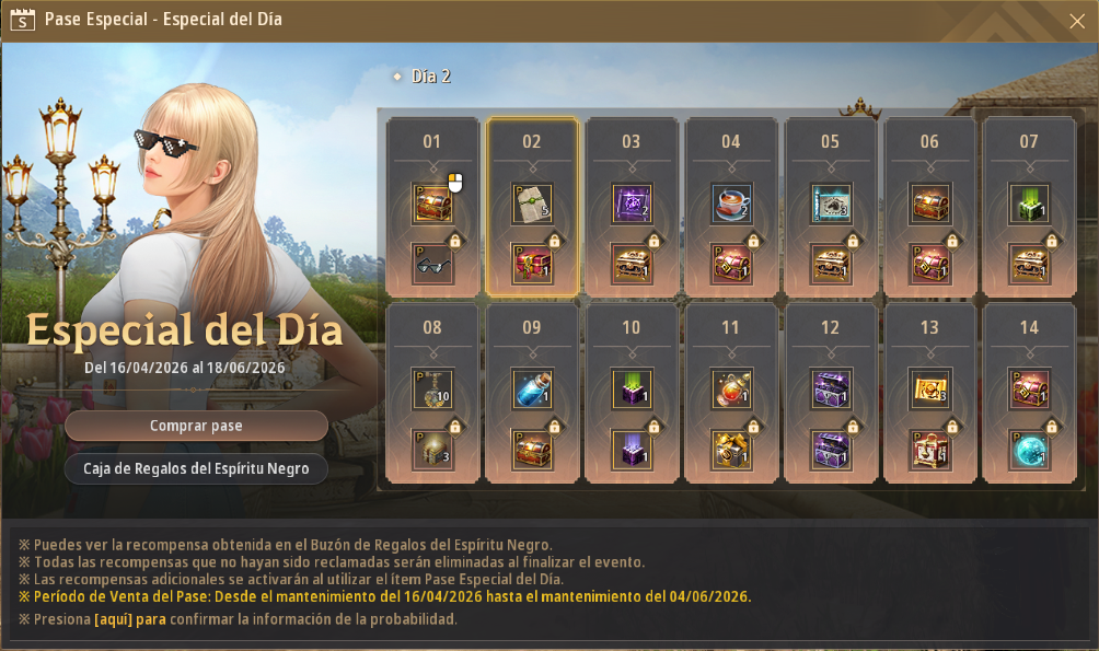 Período de Venta: 16 de abril de 2026 (jue.) despues del mantenimiento ~ 30 de abril de 2026 (jue.) antes del mantenimiento.
