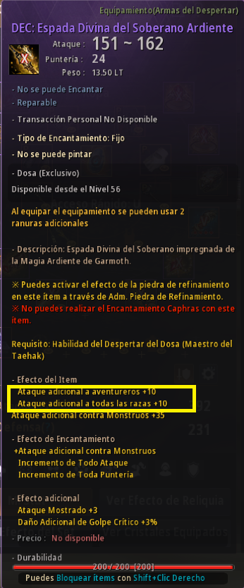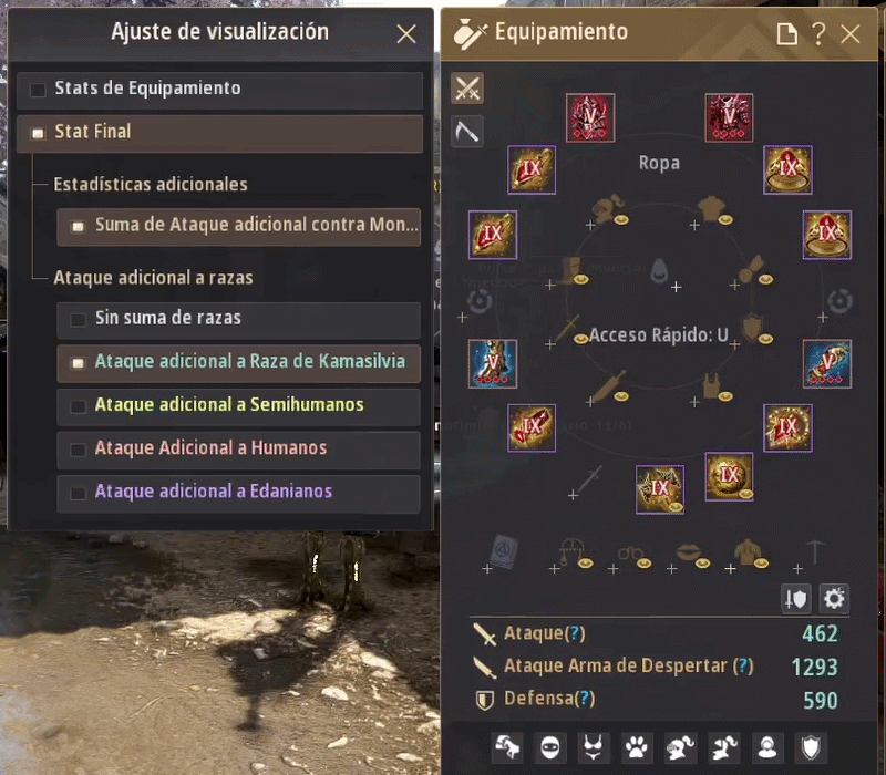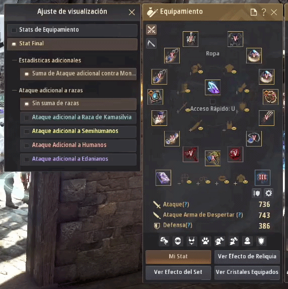 Al revisar las estadísticas actuales de tu personaje basadas en el stat final, ahora puedes confirmar el valor total que suma el ataque adicional a razas como humanos, kamasilvia, semi-humanos y edanianos.