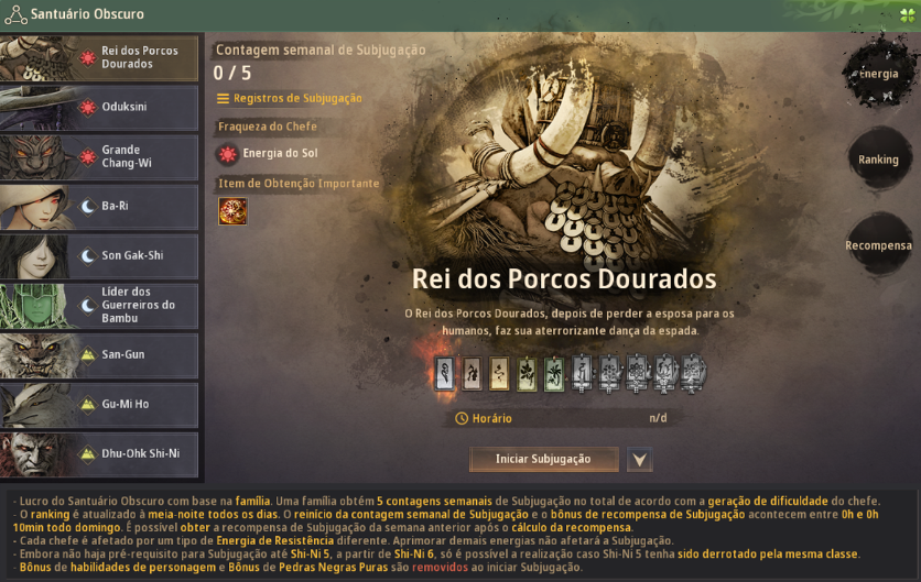 Aventure-se no Santuário Obscuro de Dhong-Hee e derrote San-Gun, Gu-Mi Ho, o Líder dos Guerreiros do Bambu e o Rei Porco Dourado. Derrote cada um desses chefes formidáveis ao menos uma vez e você conquistará recompensas adicionais.