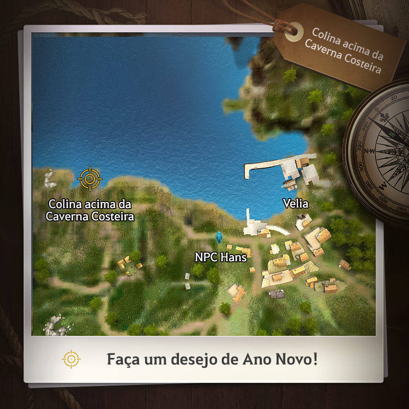 ▲ A partir de Velia, siga o caminho passando pelo NPC Hans e suba a colina para encontrar Lara!