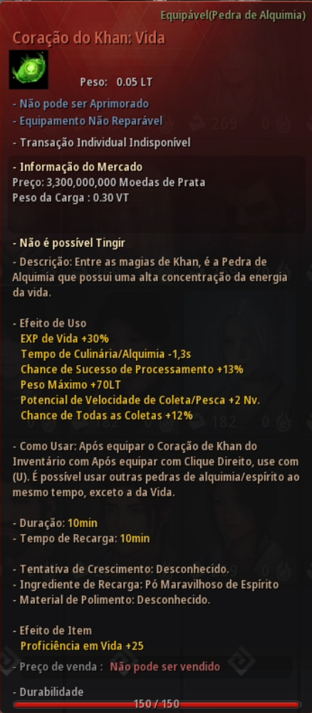 • Adição de efeito "EXP de Vida +30%" ao Efeito de Uso do Coração do Khan: Vida.