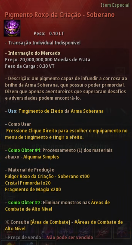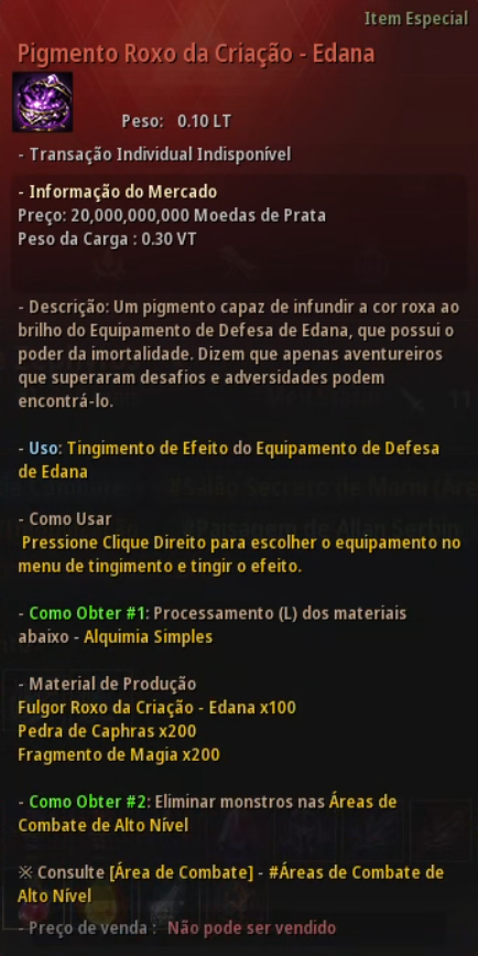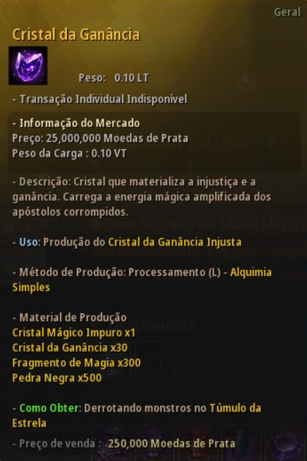 Preço Máx. do Mercado Mundial: 50 milhões de Moedas de Prata |