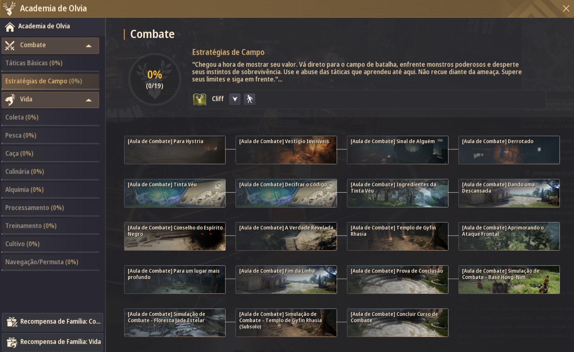- Conclua todas as aulas de Combate e Vida na Academia de Olvia para resgatar as seguintes Recompensas de Família: