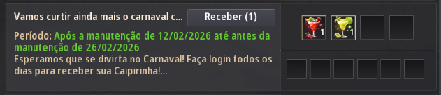 * Os itens [Evento] Caipirinha de Morango & [Evento] Caipirinha de Limão não usados, serão deletados durante a manutenção do dia 5 de março de 2026 (qui.).