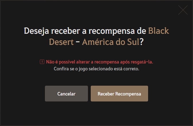 Certifique-se de que o jogo e a região selecionados estão corretos e clique em [Resgatar Recompensas].