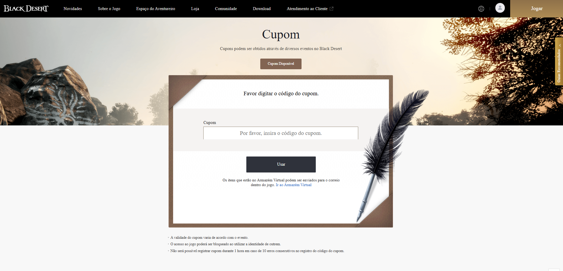 Insira seu código em [Usar Cupom] para receber suas recompensas via Correio do jogo.