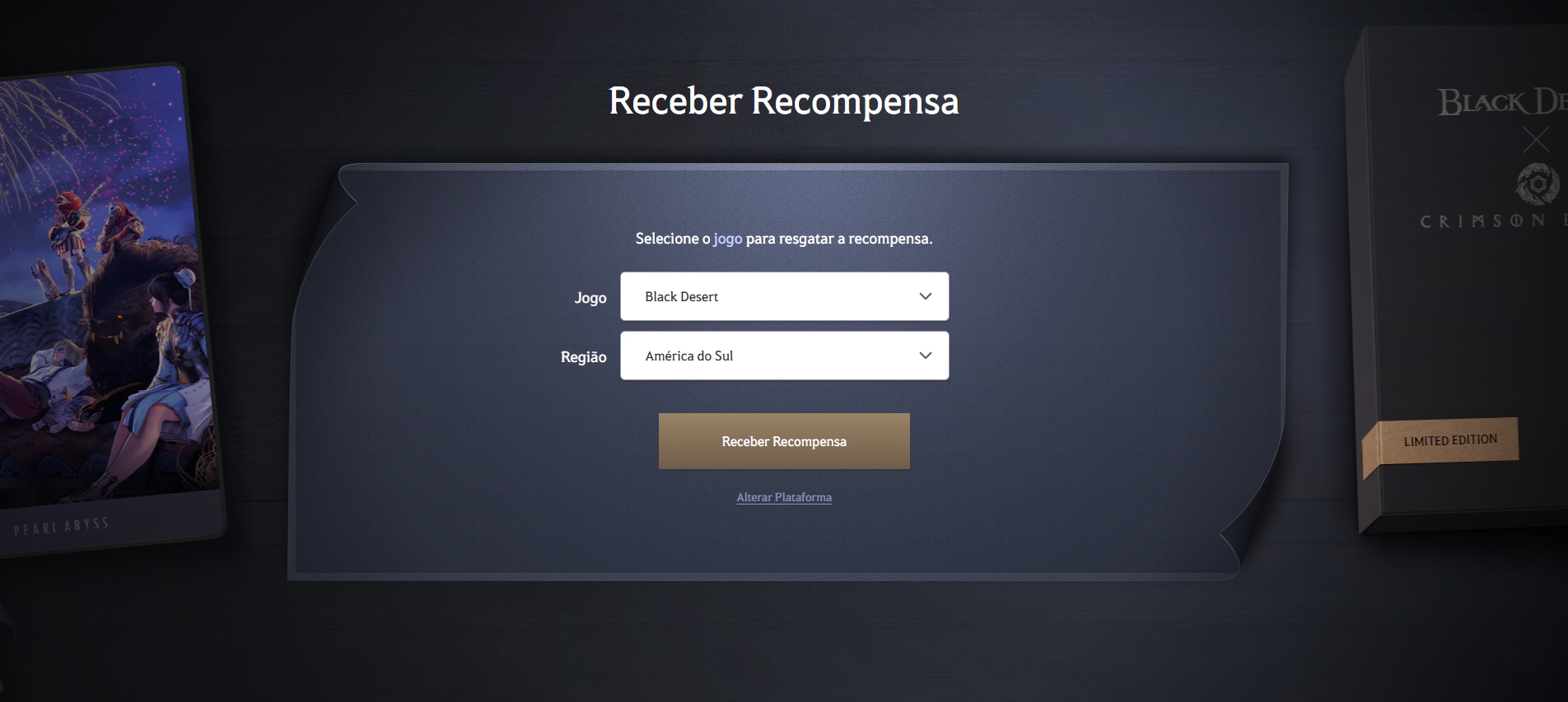 Selecione o jogo e a região onde deseja receber as recompensas.